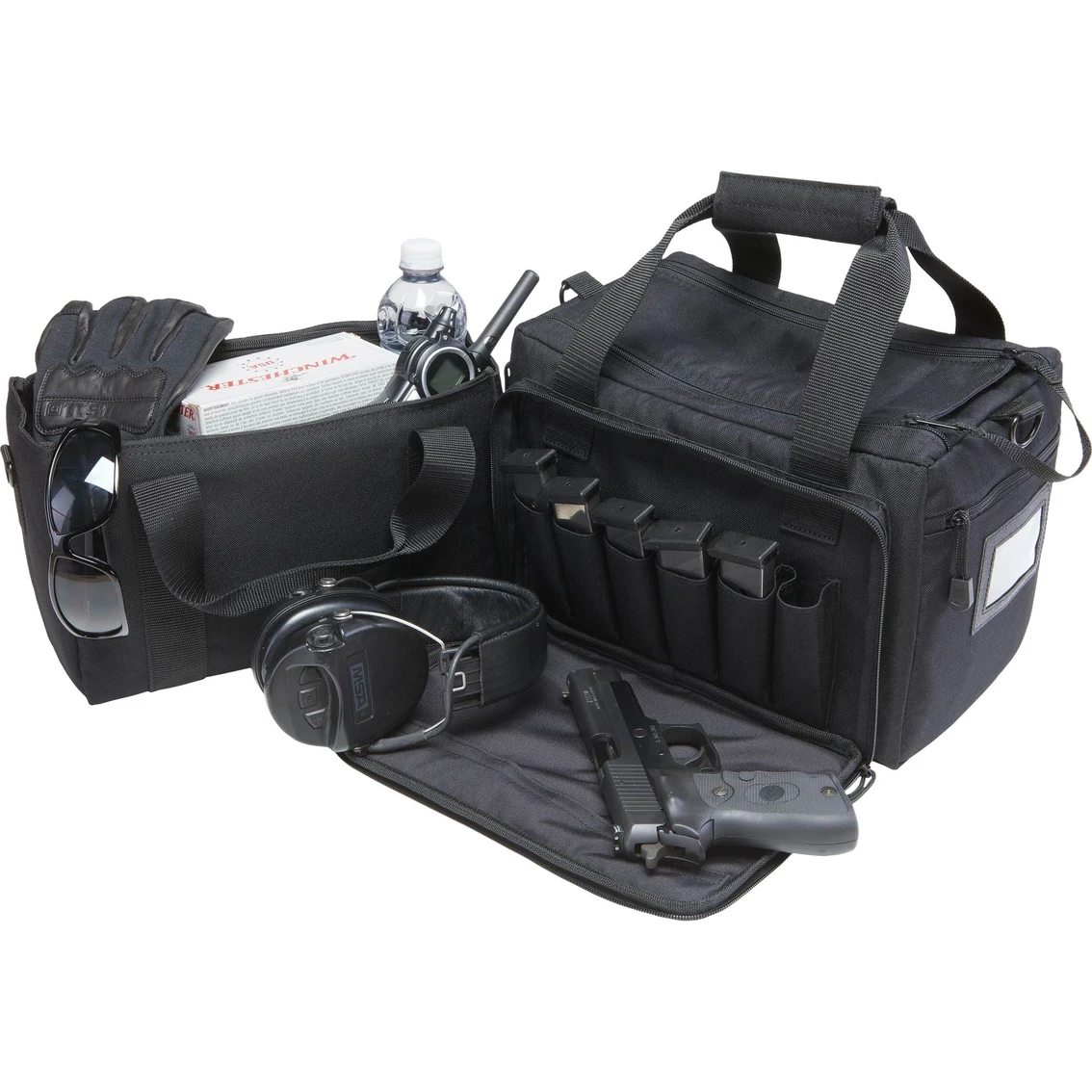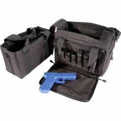 The Range Qualifier Bag is a quick and compact tote designed to transport your firearm and ammunition to and from the gun range. Locking zippers offer added security, an internal magnetic keeper ensures your accessories stay in place during travel, and padded pistol sleeves cradle your firearm to prevent scuffs or scratches. Additional features include internal and external web platforms that allow complete storage customization, an insulated hydration compartment, a drop-down front for a flat work area, and dedicated eye and ear protection sleeves to ensure that you have everything you need for a safe and efficient day at the range.
