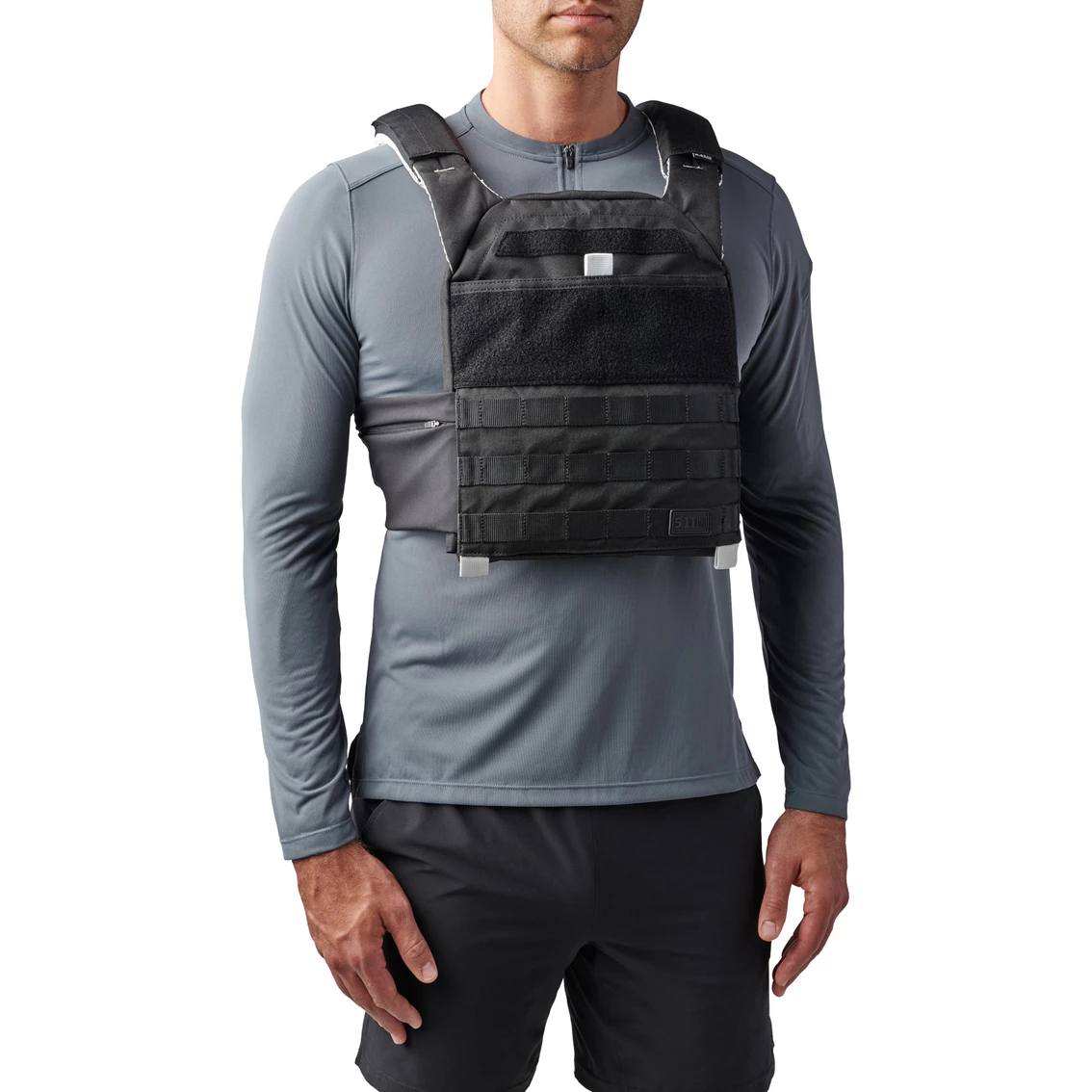 Unleash your inner savage with the TacTec Trainer Weight Vest that 5.11 designed specifically for training. Constructed from tough 600D polyester, the TacTec Trainer Weight Vest holds 5.11 and Rogue weight plates and the 5.11 TacTec Weight Plate Sandbag. Adjustable yoke shoulder straps with breathable mesh padding and breathable mesh body pads help you push your limits and keep you cool. The adjustable stretch cummerbund keeps the weight vest secure, while the pockets allow you to stash and access accessories. The front admin pocket and loop laser-cut and web MOLLE platforms offer additional carrying capacity and pouch customization. Internal retention straps hold the weight plates securely in place. The TacTec Trainer Weight Vest is compatible with the 5.11 PC Convertible Hydration Carrier. What are you waiting for? Get after it. One size fits all. Imported.