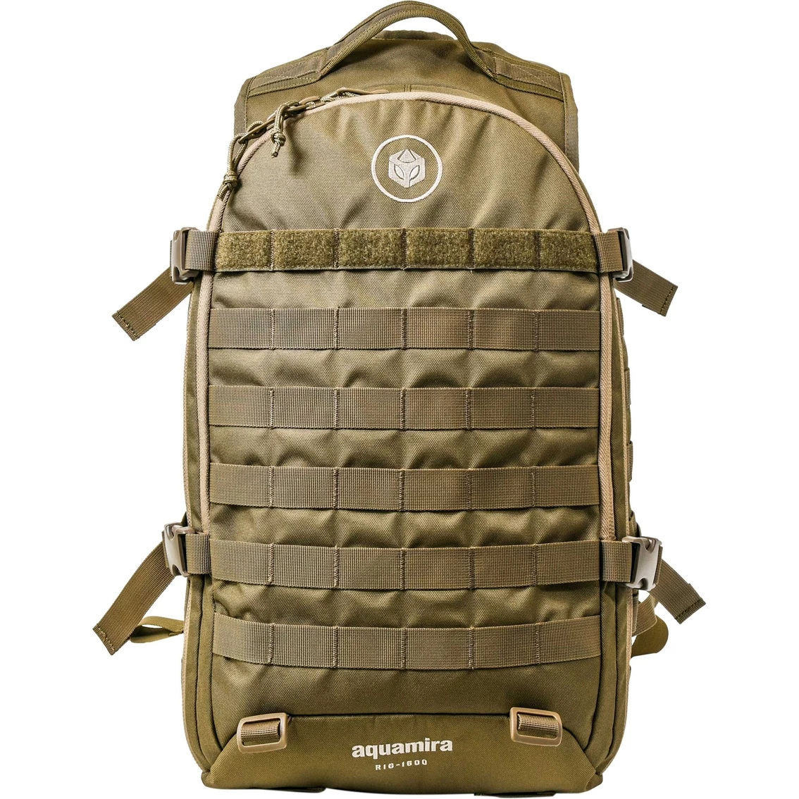 Stay hydrated in the field with this Tactical Rig 1600 pressurized hydration pack from Aquamira. Use the Tactical Rig 1600 to carry your gear in the large compartment, versatile storage pockets and admin panel. Attach additional pouches to the outer MOLLE webbing and control the load with the built-in compression straps. Model: 85408.