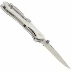 The Bear & Son Pattern 108 is a 9-5/8 in. Black Compact Bowie knife that is part of the Bear Edge line and weighs 5.8 oz. The hollow ground blade is made with 440 High Carbon Stainless Steel with a black powder coating to help prevent rust and is easy to sharpen. This fixed compact Bowie is designed with a stainless-steel guard and the Bear Edge logo is engraved on the blade. The handle is made with a rugged Black G10 style for a secure grip and comes with a ballistic sheath for belt carry. A lanyard hole is also present on the back of the handle for secure fastening and storage.