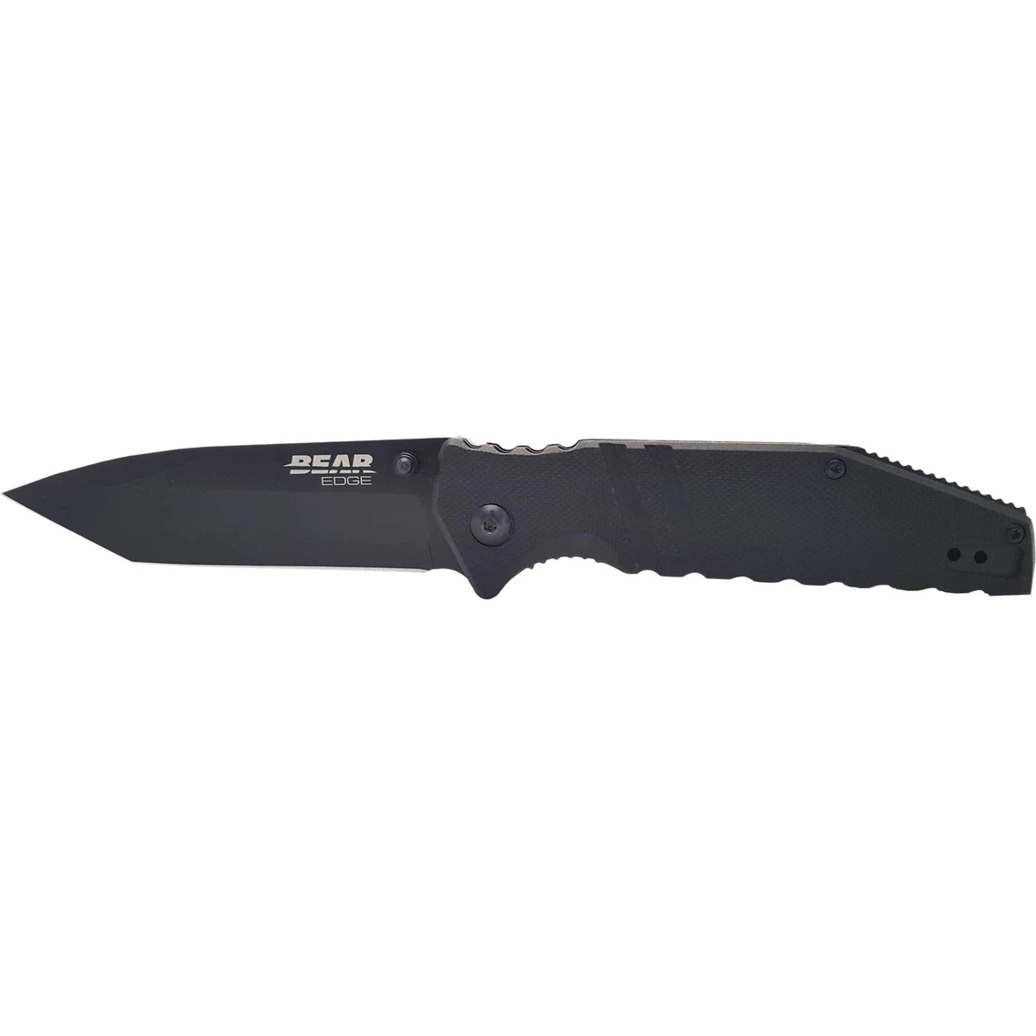 The Bear Edge Pattern 503 Knife from Bear & Son is an imported 4-1/2 in. Black G10 Assisted Tanto Sideliner. The hollow ground 3-3/8 in. Tanto Blade is made from 440 stainless steel with a black powder coat finish. The spring action allows for a faster and smooth opening with a simple push up on the dual thumb studs. The 4-1/2 in. black G10 handle has a comfortable feel and jimping is present along the top of the handle and blade for a more secure grip. Pattern 503 also features a reversible pocket clip that is for tip-up carry and quick access. The stainless-steel sideliner lock ensures that the blade will lock into place and is easy to close. The open length for Pattern 503 is 7-7/8 in. and weighs 4.7 oz. Model: 61503.