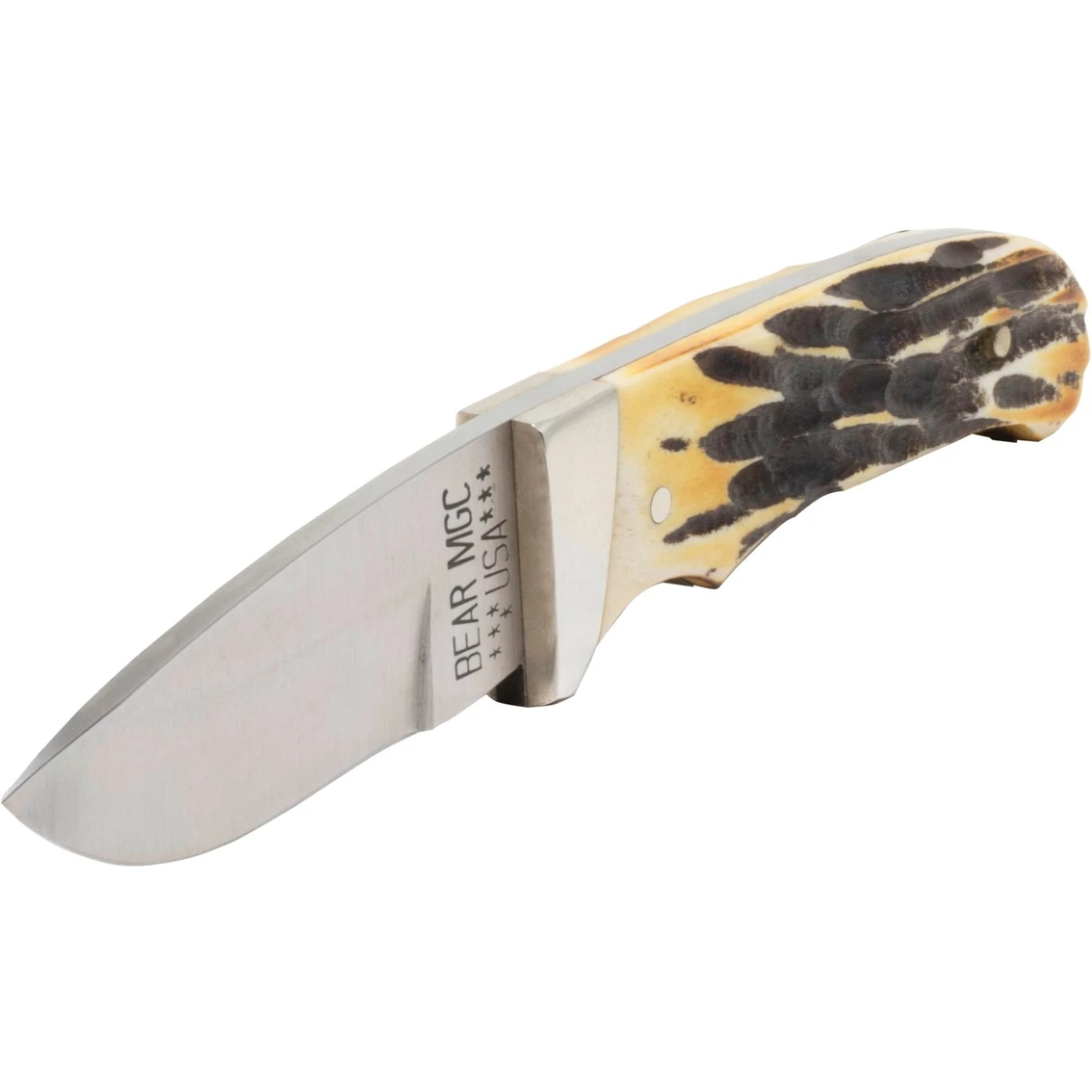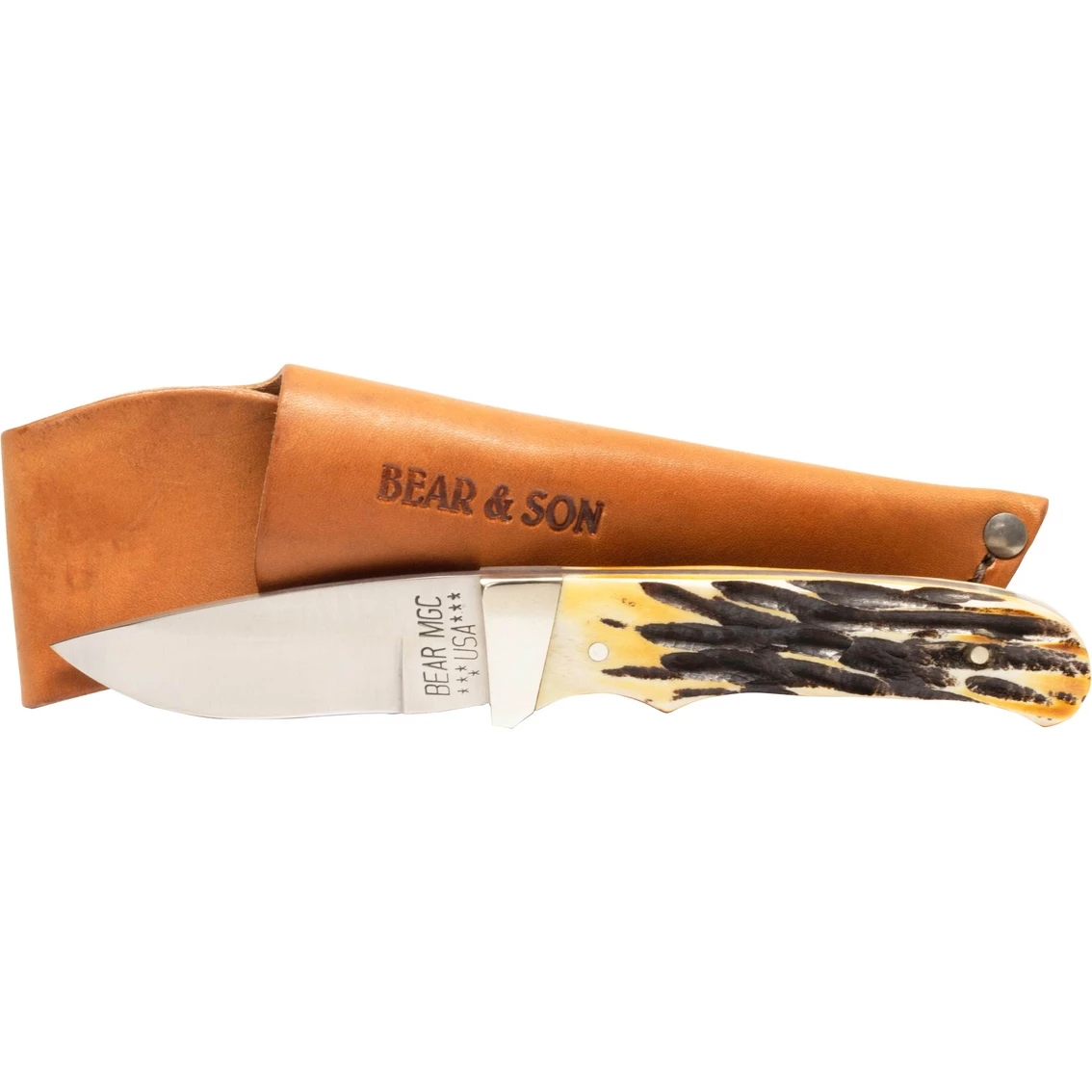 Buy 🎁 Bear & Son Cutlery Genuine India Stag Bone Drop Point Skinner Knife With Sheath 👍