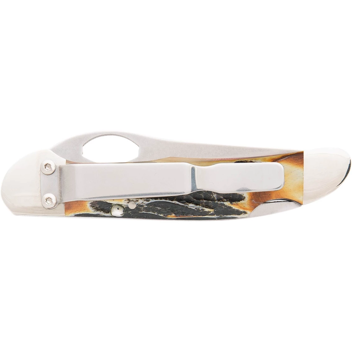 The Bear & Son 149L Pattern has a traditional look with the function of a modern one hand opening lockback knife. The 2-7/8 in. taper ground blade has Nickel Silver bolsters, beautiful genuine India stag handles, and a pocket clip. At 3-3/4 in. closed and a weight of 2.4 oz., this lockback folder is a perfect gentleman’s EDC blade from a quality manufacturer and proudly made in the USA. Model: 5149L.
