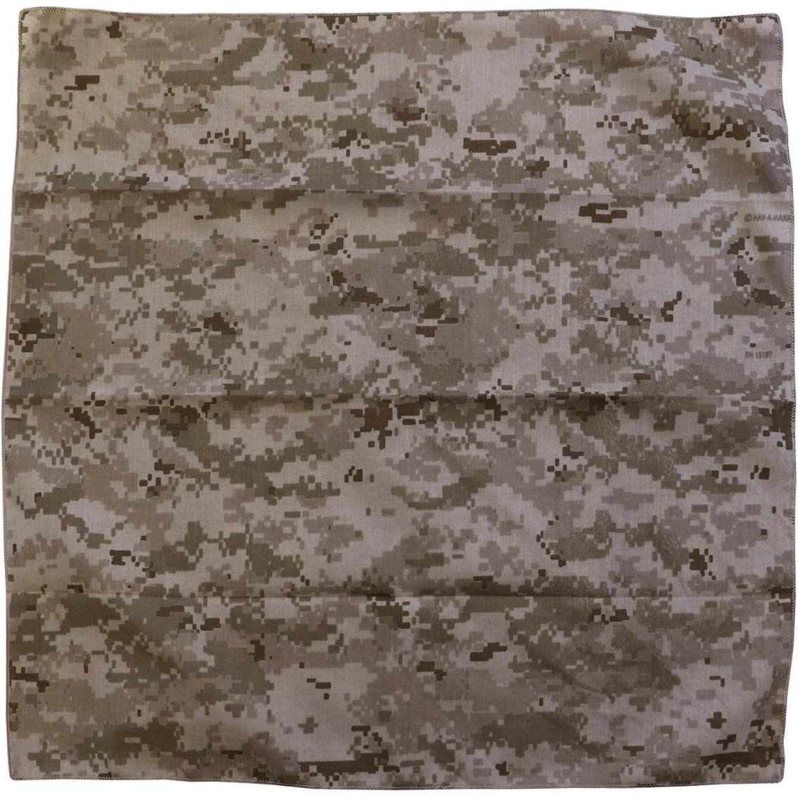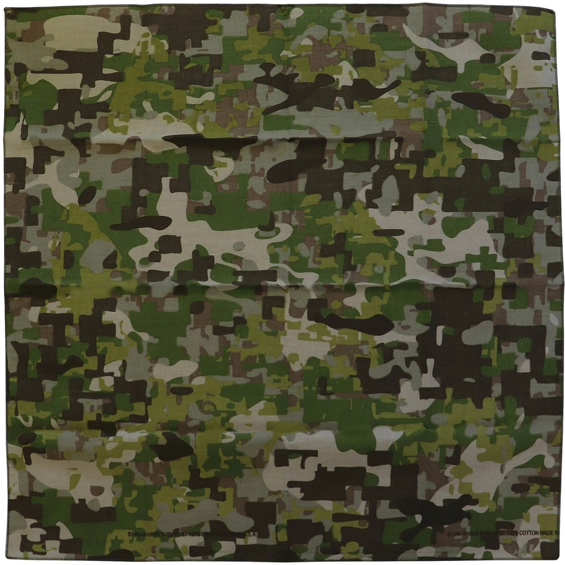 Generous 22 X 22 in. size bandanna from Brigade QM is ideal for sun, wind or dust conditions to cover the nose, forehead and camouflage the face. Makes a great sweat wipe, sling, do rag and emergency wrap. OEF-CP Pattern Multicam is 100% cotton. Digital Woodland Green and Digital Desert Tan patterns (similar to MARPAT) are 50% cotton and 50% polyester.