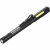 - Maxbright LumiLed White LED plus Ultrabright Red LED. White – 2 brightness levels, 70 lumens high, shines up to 30 meters.