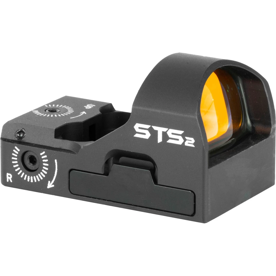 Heads up display for fastest target acquisition. Super bright red dot available in 3 or 6 MOA with 10 manual brightness settings. 1 MOA click adjustments for windage and elevation featuring a positive locking screw. Removable battery tray eliminates re-zeroing when changing batteries. Requires a C-MORE Mounting Kit (Sold Separately). Model: CMSTS2B-6.