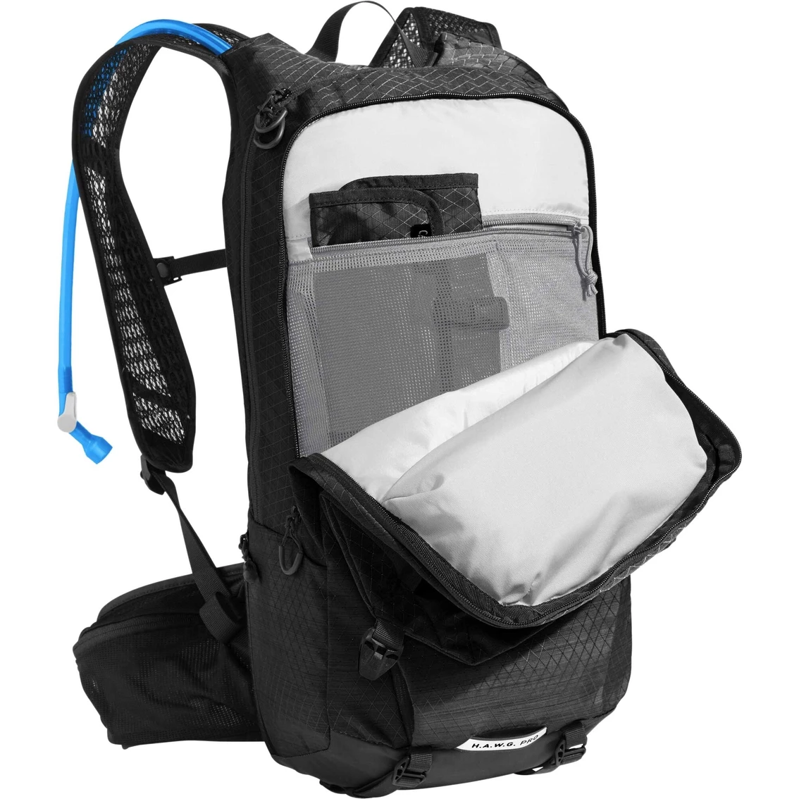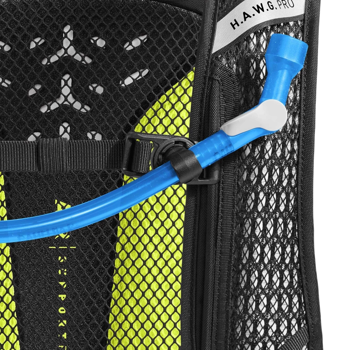Maximum storage, hydration, and comfort make the H.A.W.G. Pro a triple threat on the trail. Equipped with a large 3-liter Crux Reservoir and the cargo capacity to hold another – for a full 6-liters – our largest bike pack was built for long days and epic rides. The all new Air Support Pro Back Panel is comfortable and efficient. Designed with body-mapping technology, air flow is channeled to cool areas that generate the most heat. The 3D vent mesh harness is light and durable and a magnetic tube trap allows for quick sips without taking your eyes off the trail. Hip belt cargo pockets keep essentials close at hand and the universal helmet hook makes it easy to carry when not riding. Unpredictable weather? The built-in rain cover quickly deploys to shield your gear. Always adventure ready, this next generation H.A.W.G. is also Impact Protector and e-bike battery compatible.
