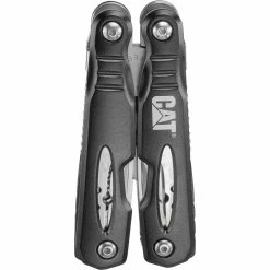 This sharp-looking multi tool from CAT backs up good looks with utility to spare. Underneath the black anodized aluminum skin is a multi-function solution for work, play, outdoors, automotive, boat and RV. Thirteen useful tools are housed in a lightweight aluminum chassis. These stainless steel tools feature a black finish to eliminate glare and resist corrosion, while the adjustable set screws let you tighten everything up as needed. The handles fold closed for compact storage between uses. Model: 980021