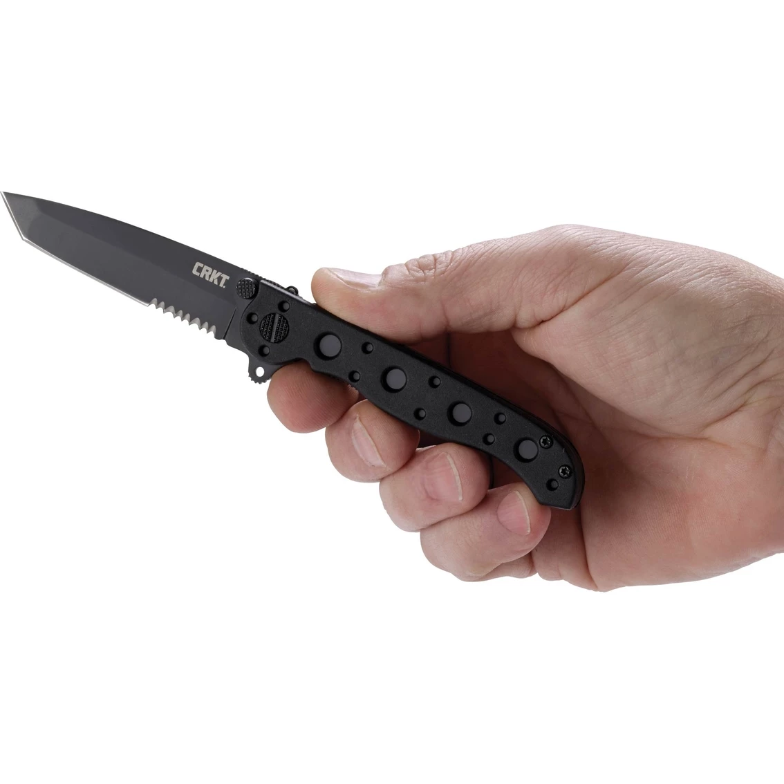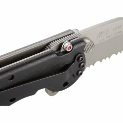 Tanto black with triple point serrations. If it still looks this good a year from now, we want it back. This everyday carry pocket knife is designed just like the tactical version that inspired it — to be used. That’s why it’s overbuilt with an open build frame, high carbon stainless steel blade, and the signature Carson Flipper. Admire it. Then put it to work. The M16 Z everyday carry series was designed by Vine Grove, Kentucky’s legendary custom knifemaker and retired Sgt. Major Harold “Kit” Carson. After years of crafting knives for military use, he answered the call when it came to creating one for the civilian population. Now people everywhere have a blade that’s ready for the line of duty in whatever capacity they see fit. An affordable everyday carry knife, the M16-10KZ features a dual hollow grind Tanto-style blade available in plain edge and Triple-Point serrated edges similar to the “Big Dog” tactical M16 models. The result is maximum blade strength and ability to saw through cord, webbing, nets or vegetation quickly. It also comes loaded with a distinctive black frame and hardware with a non-reflective tactically inspired look. But at this price, you won’t feel guilty if you leave it at a job site somewhere as night sets in. The blade opens easily when you need it most. Just put your finger on the Carson Flipper. Flick your wrist. Then it all locks into place with the automated liner safety that automatically actuates when the blade is open. It’s goodbye folder and hello fixed blade when locked. You’re safe and sound and ready to go. To close the knife, pull the red buttoned safety lever back, slide the locking liner over, and fold the blade into the closed position. The handle features easy-to-grip glass-reinforced nylon scales and a stainless steel lined InterFrame. Assembled with glass-reinforced nylon back spacers and Torx fasteners as well, the handle is rigid and offers excellent toughness and resistance to solvents. A one-position, stainless steel pocket clip rounds out the features. Hold on and be ready to put this knife through anything.