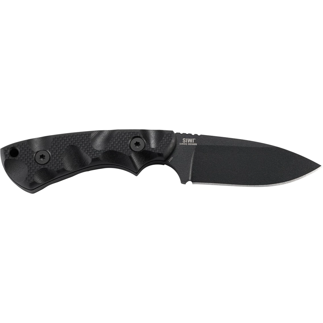 This mission-ready fixed blade is a compact powerhouse. Though that sounds like a paradox, the proof is in the incredibly stout modified drop point SK5 carbon steel blade. Finished with a non-reflective and highly resistant black-powder coat, it’s built to last, a quality that’s equally as evident in its unique G10 handles. The handles match the 3.3 in. blade in its compact-yet-stout capacity with texture for a strong grip even in the grittiest conditions. The subtle jimping on the back spine finishes the look and feel. Finally, the glass-reinforced nylon sheath stands up to its counterpoint when it comes to utility with many different carry options. When two great minds converge to create a knife, you know it’s going to be good . . . the SiWi far exceeds expectation. Model: 2082.