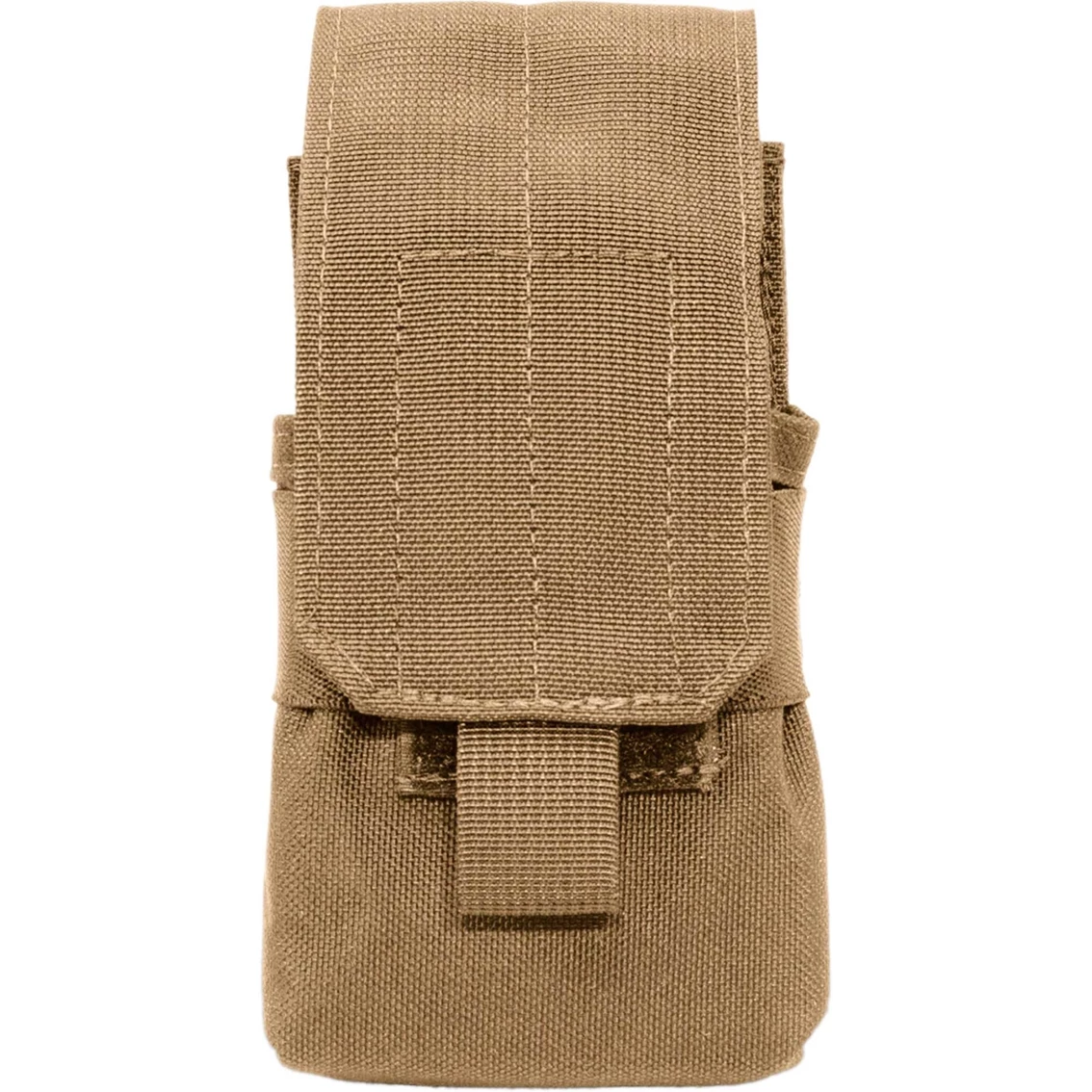 The Molle Mag Pouch M4 holds two .223 or one .308 mag in one pouch. This rifle magazine holder is available in black, coyote tan and multicam. Made in the USA. The rifle mag pouch attaches to any Molle compatible vest, pack, etc. Rifle magazine pouch is constructed of Cordura 500D nylon for maximum durability. The flap of this Molle single mag holder has a Velcro closure and glove-friendly tabs. Model: BE104.