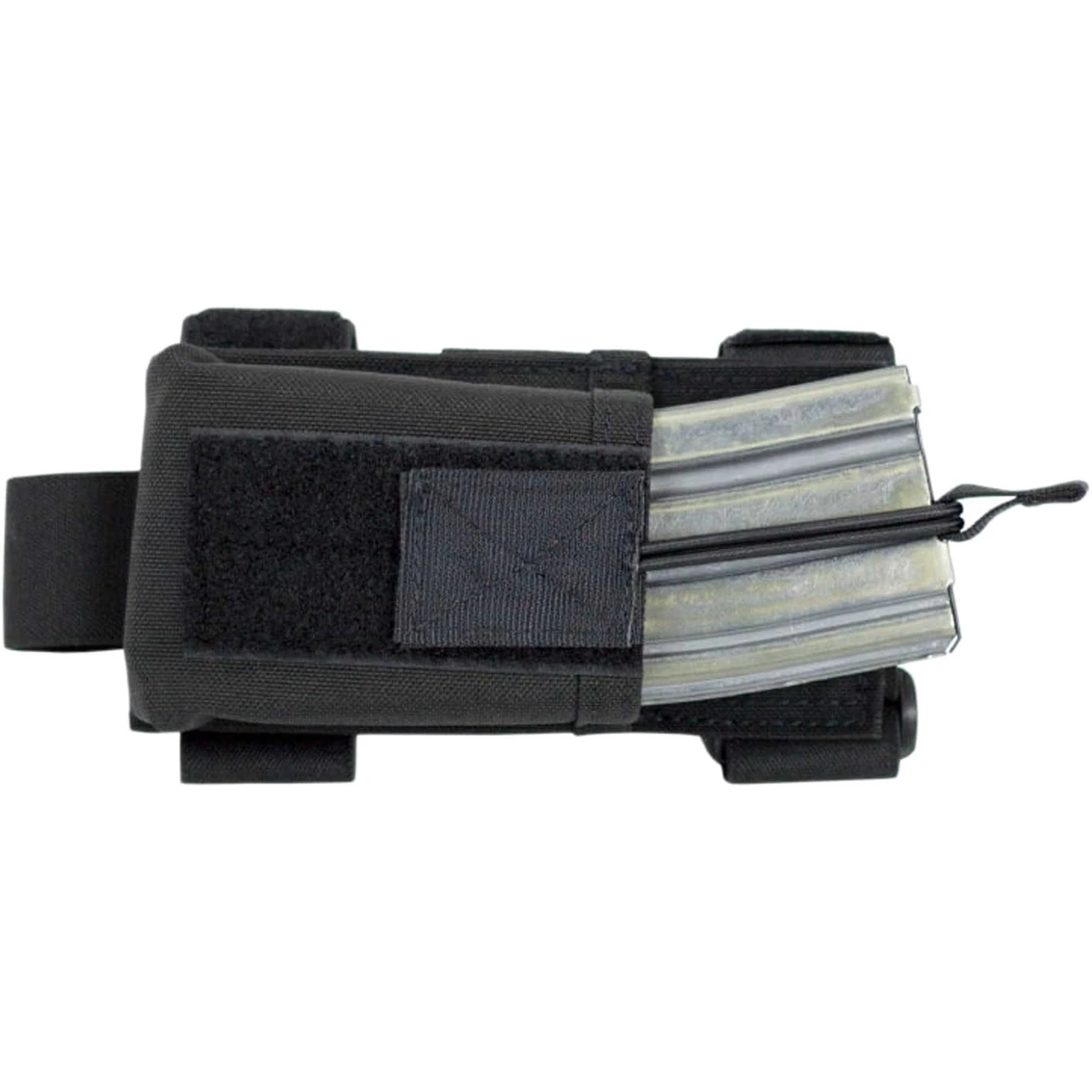 This Elite Survival butt stock magazine pouch attaches to fixed or collapsible stock rifles. It’s made of 1000 denier nylon for enhanced durability. Heavy-duty elastic straps with Velcro closures ensure the pouch stays attached. Model: 3105.