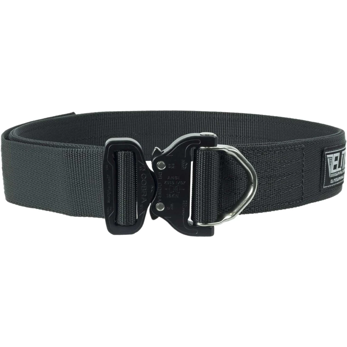 Meet the Cobra Rigger’s belt! The Elite Survival Systems Cobra Riggers belt is the first of its kind to have a buckle that fuses AustriAlpin’s patented Cobra quick release system and a rescue D-ring! The D-Ring Cobra Buckle itself is rated at 4000 lbs. (straight pull) and the D-ring is rated to 5000 lbs. (straight pull), far exceeding ANSI Z359.1, CSA, EN, UIAA and NFPA standards for fall protection. Add this Elite Survival Systems Cobra Riggers belt with a D-ring to your toolkit today! You can also personalize your belt by adding tactical pouches!