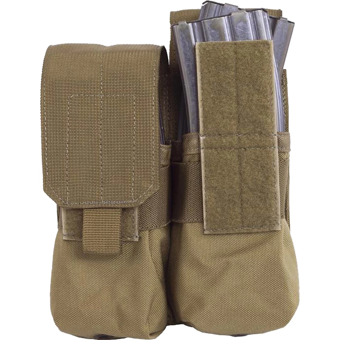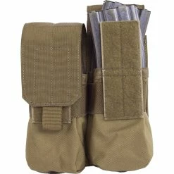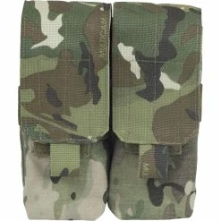 Constructed of Cordura 500D nylon with Velcro closure. the Elite MOLLE double mag pouch holds four (4) 5.56/.223 magazines or two (2) 7.62×51/.308 magazines. This double mag holder is available in black, coyote tan, wolf gray and multicam. This double rifle mag pouch is designed to fit MOLLE compatible modular equipment, including MOLLE vests and packs. Double rifle magazine pouches made in the USA. Model: ME102-T.
