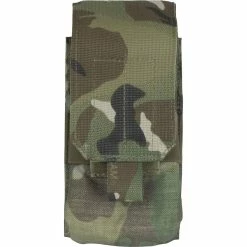 The Elite MOLLE Mag Pouch M4 holds two .223 or one .308 mag in one pouch. This rifle magazine holder is available in black, coyote tan, and multicam. Made in the USA. The rifle mag pouch attaches to any MOLLE compatible vest, pack, etc. Rifle magazine pouch is constructed of Cordura 500D nylon for maximum durability. The flap of this MOLLE single mag holder has a Velcro closure and glove-friendly tabs. Model: ME101-T.