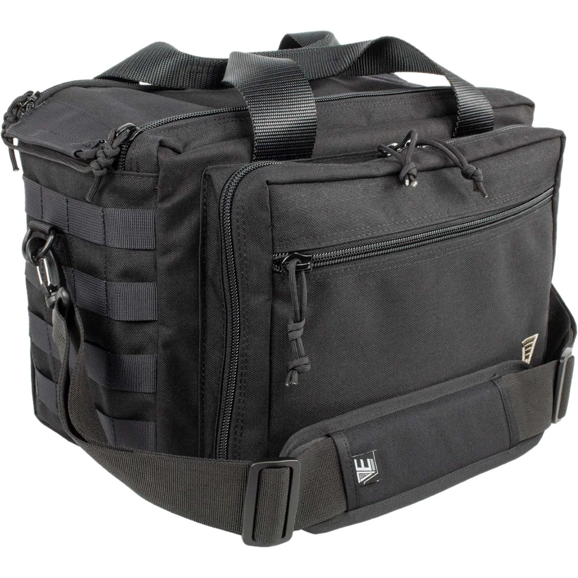 – MOLLE webbing on one end of tactical performance range bag for attaching gear accessories