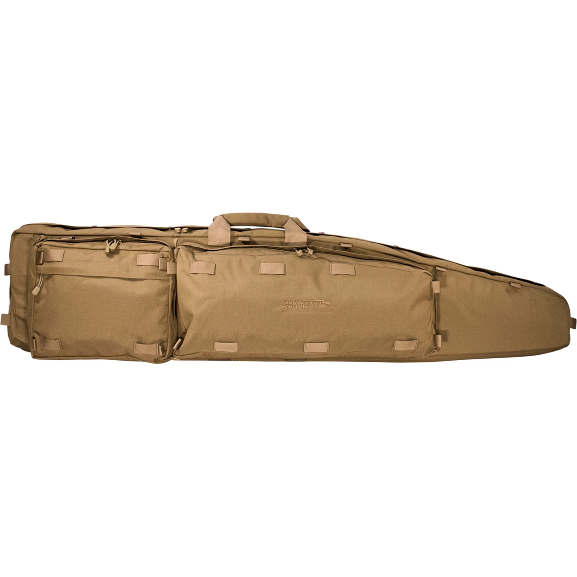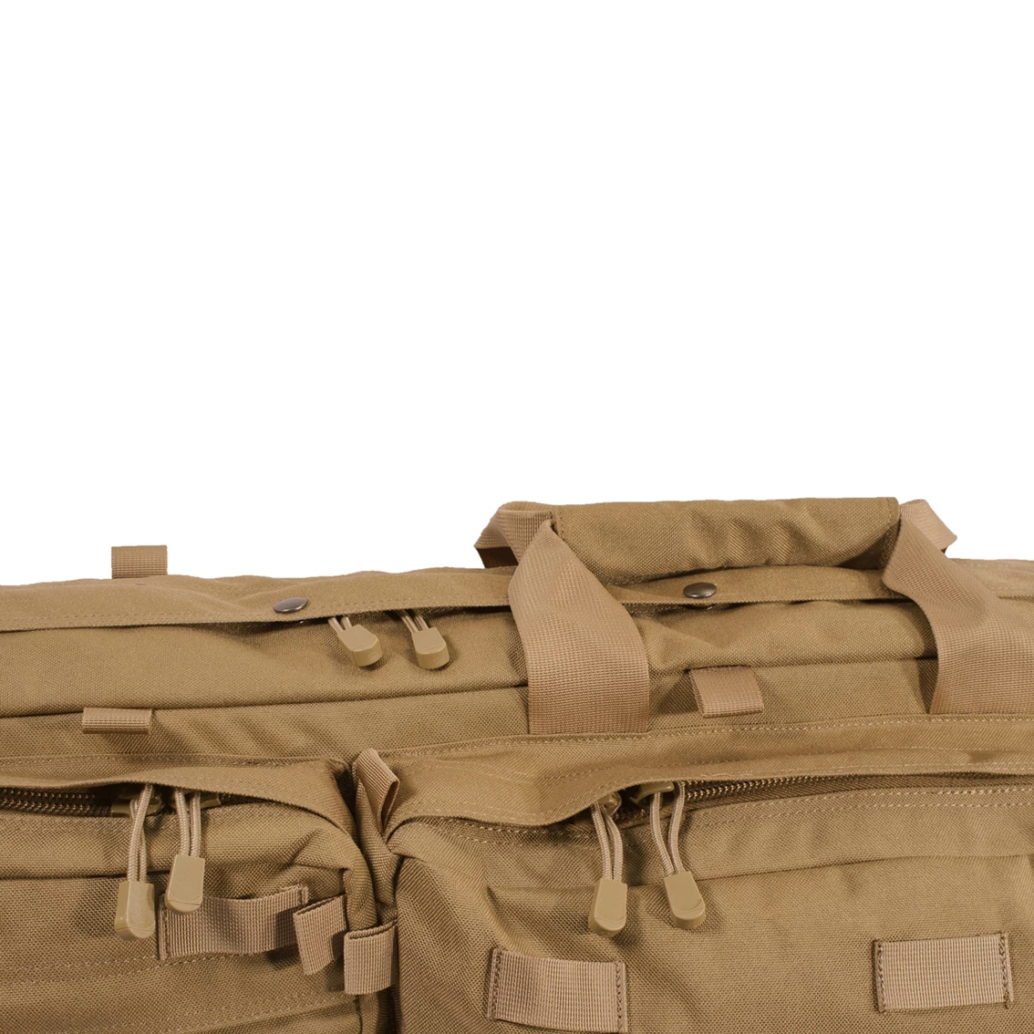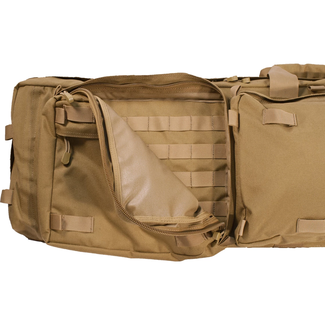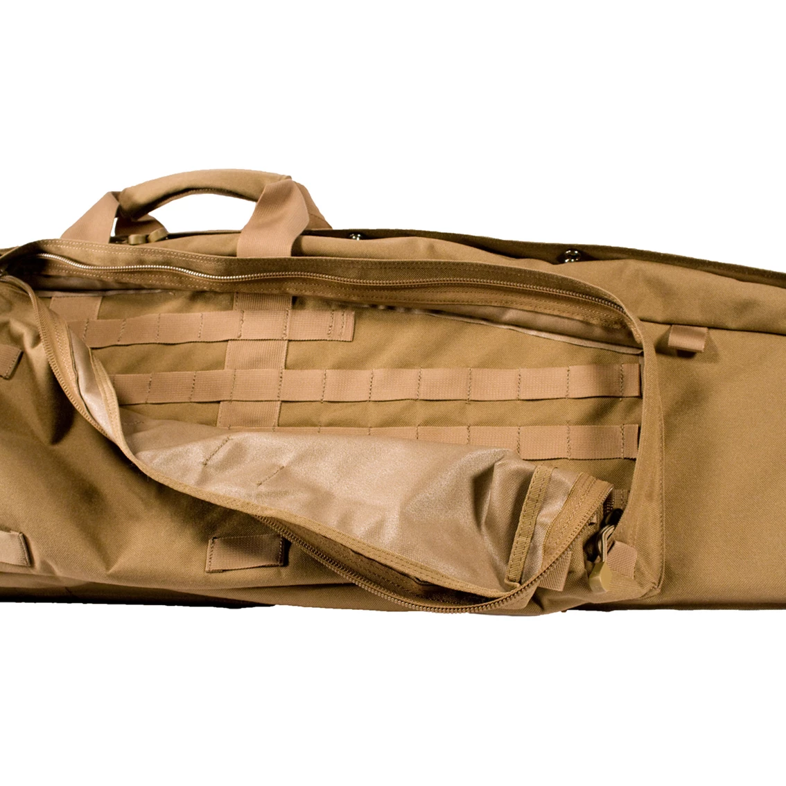 The Elite Survival Ultimate Sniper Drag Bag Rifle Case is the logical evolution of the Sniper Tactical Operations Drag Bag series. With rugged durability, all the ‘bells and whistles’ and their lifetime product guarantee, this deluxe tac ops drag bag begs to be put to the ultimate test! Made with a 1000 denier nylon construction and heavy-duty hardware. It has an internal cleaning rod pouch and internal utility compartment. Adjustable tie-down system to secure weapon. Reinforced drag handle. Loops for Ghillie attachment. Two exterior zippered cargo pockets with full internal MOLLE compatibility for attaching modular pouches. Flat exterior zippered pocket. Removable and adjustable S-shaped backpack straps which can be tucked away when not in use. Straps can also be reversed to carry sniper drag bag tactical rifle case inverted. Model: UDB-T.