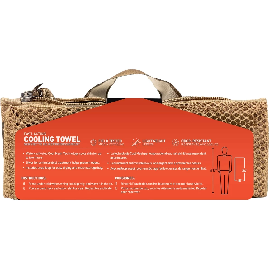 This performance enhancing cooling towel from Gear Aid Tactical is designed to reduce core body temperature by 20 degrees with evaporative cool mesh technology. The towel stays cool for 2 hours. When dry, it absorbs sweat and wicks away moisture and offers UPF 50 protection. It has antimicrobial silver treatment to inhibit odors and bacteria. Style: 44700.