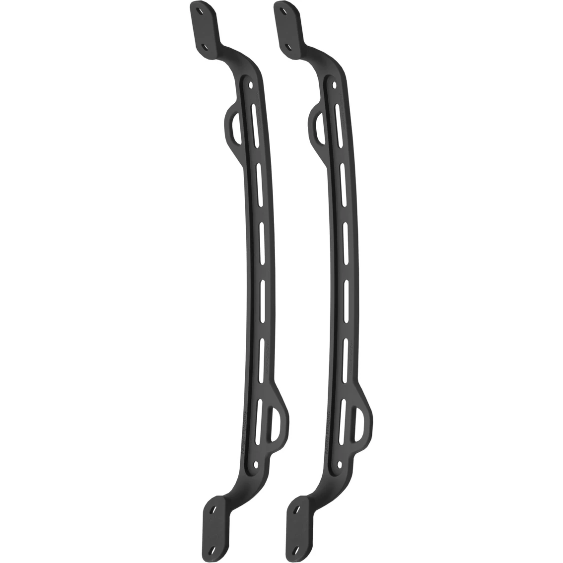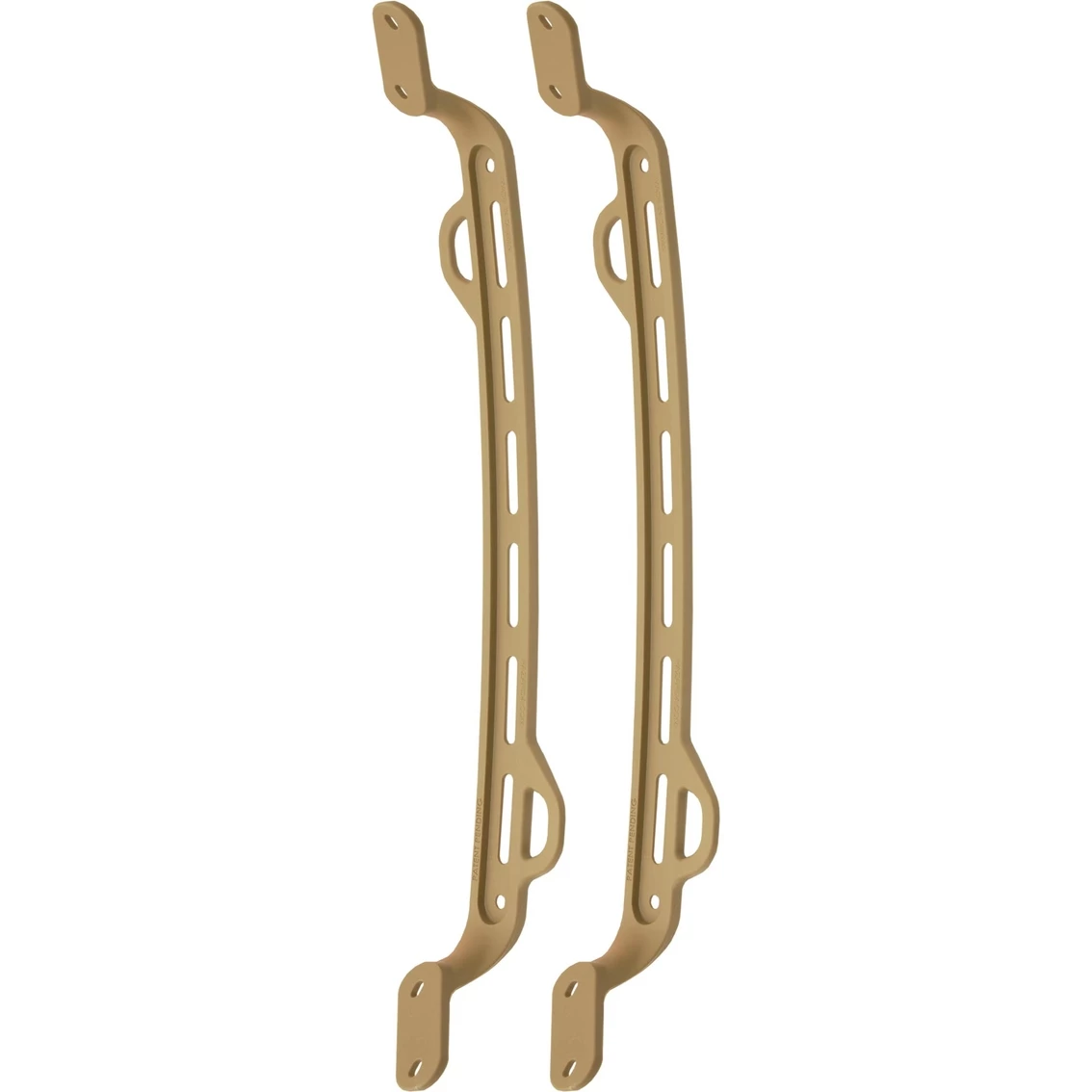 These patent pending exclusive add-ons to Hazard 4 shell packs allow for the rock solid mounting of hardware and loads thereby expanding the usability of the pack shell greatly. They screw into the top and bottom HardPoint grommets (screws and backers not included) and will allow the strapping down of helmets, skateboards, firearms, jackets, etc. between them using optional bungee cords, 1 in. straps, paracord, etc. This is done by the variety of thoughtful slots and holes molded into the tough nylon construction. The slots are also designed to work with popular holster screw systems for the attaching of various index, nylon and leather holsters for knives, machetes, axes, radios, magazines, etc. The various holes and slots can accommodate photographic 1/4 20 in. screws to mount action cameras, articulating arms, lights, external battery packs, etc. And the relief groove on the back means that the screws or nuts will not stick out the bottom or catch on anything.