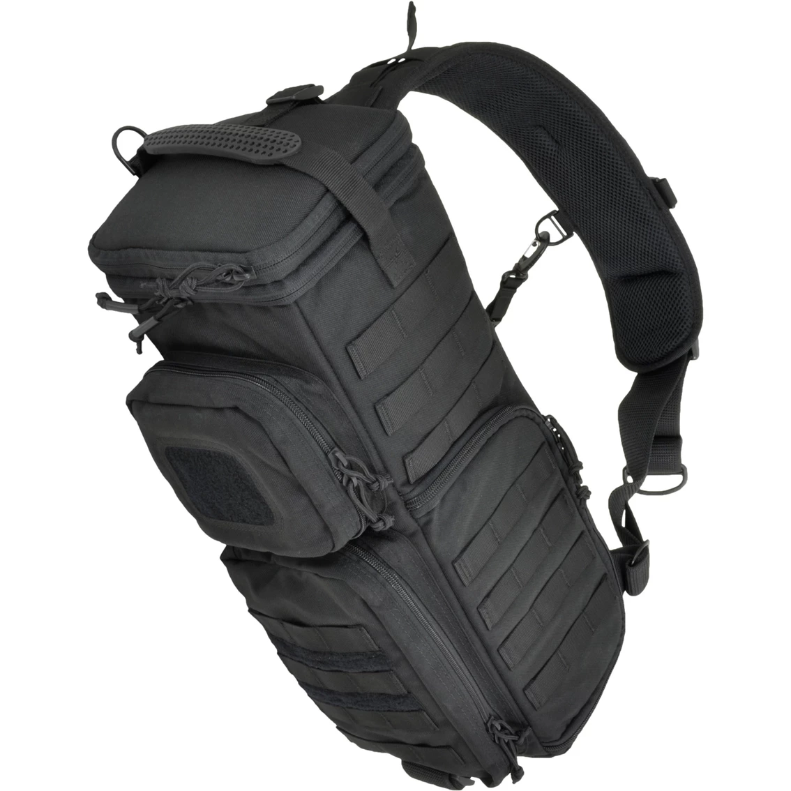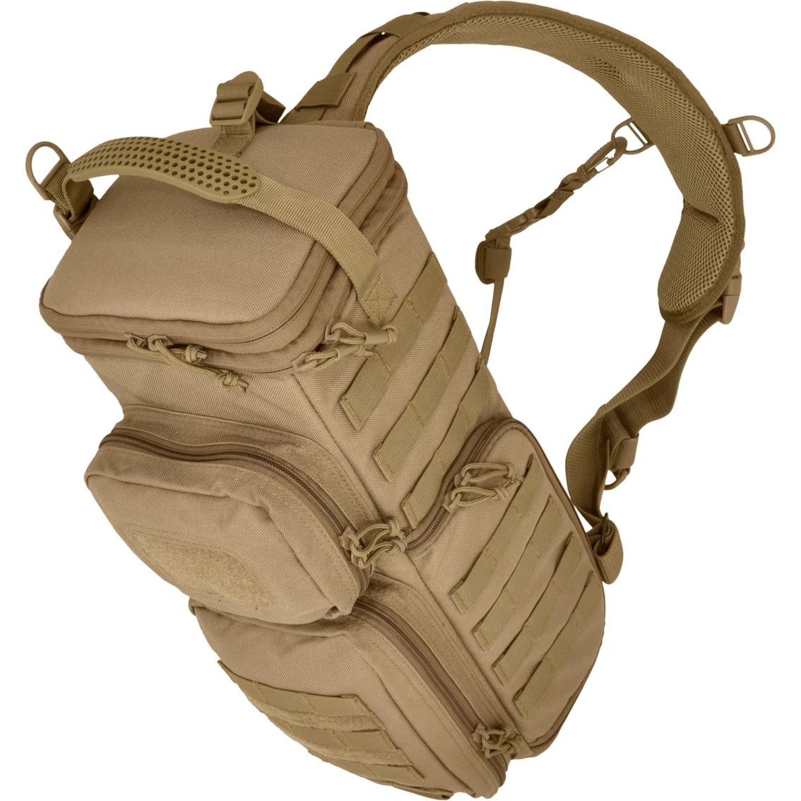 Being jammed in confined spaces for hours is an unfortunate part of the business for many professionals we serve. Whether its a military unit in an a.p.c., a pilot in a cockpit, drivers in a HumVee, or a journalist in the back of a goat truck, they all have to bring their gear. And they all may need to relocate in a hurry. This is the environment for which Hazard 4 Evac line of sling packs has been geared. They are slim shaped to be easily maneuvered in crowds or stored in vehicles/lockers, and are quick to take on or off. They are also ambidextrous, and unlike others in this class, are actually comfortable on the shoulder; the bottom strap clips from either the right or left lower corner and the padded section realigns itself ergonomically in the correct body-hugging direction. The bag can be rotated to the chest for on-the-go access, and all pockets are designed to face the user in this mode on either the right or left side. One-strap-carry also makes shouldering a long-gun comfortable – unlike a backpack.