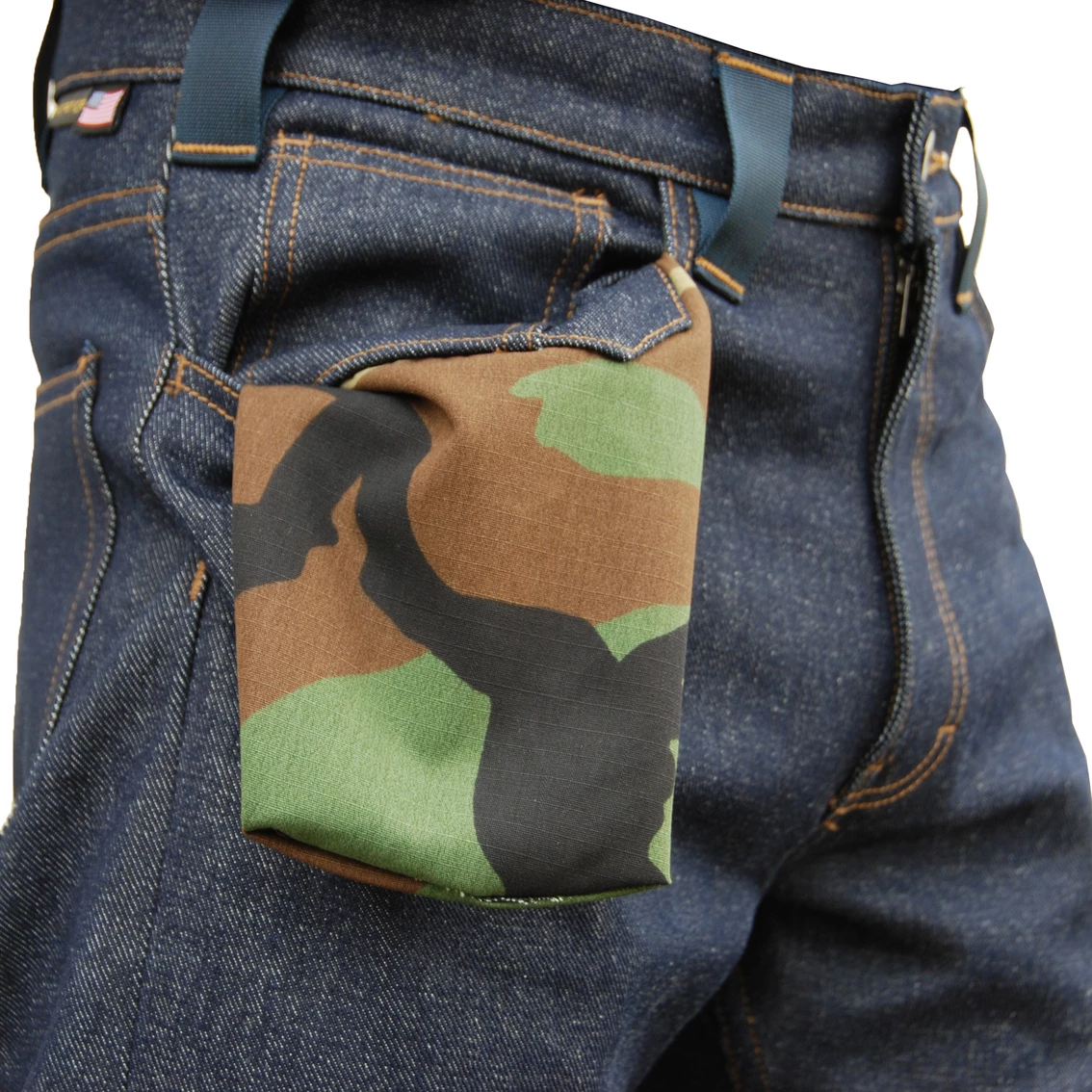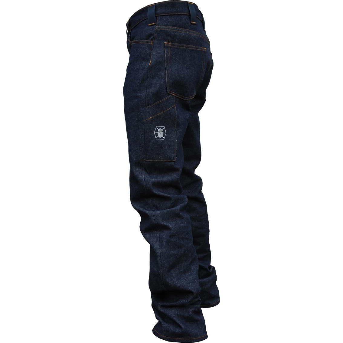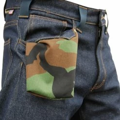 Kitanica’s six-pocket, regular fit, straight leg jeans are constructed of 14 oz. denim crafted in America with 100% American grown cotton. They are outfitted with 7 nylon webbing, wide opening belt loops to accommodate larger belts. There’s a specialized cell phone pocket on the left thigh. All pocket bags are made of 50/50 nylon/cotton camo ripstop to prevent pocket blowout. All stress points are bar-tacked. These pants are 100% American made. Style: 301-BLU.