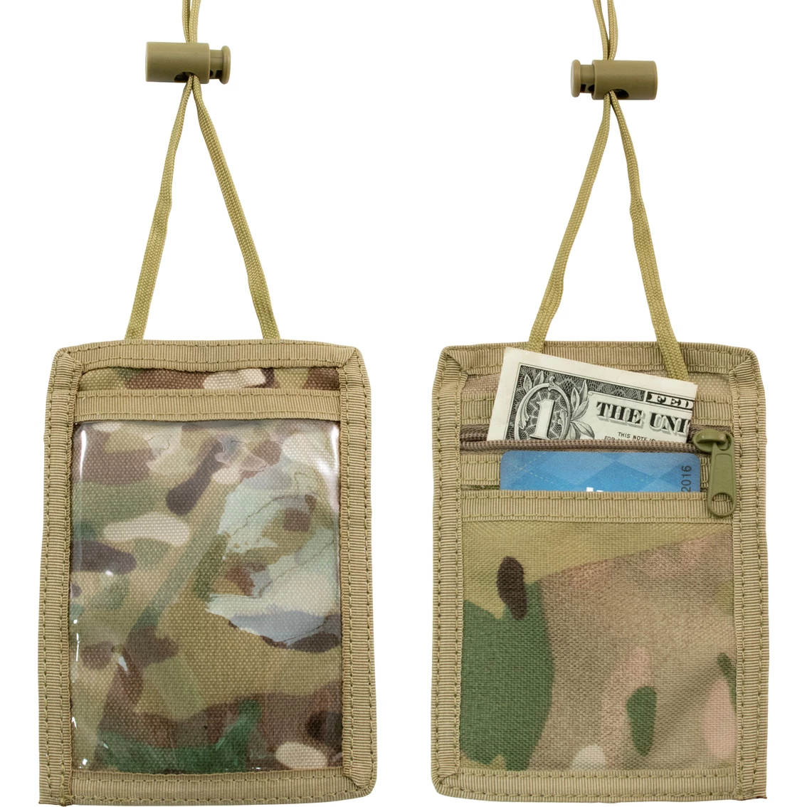 The clear ID pocket accommodates a standard-sized ID. Holder also features two exterior slash pockets and one zippered pocket for additional storage. Holder features 15 in. long adjustable neck strap. Keep your military ID visible while in uniform with Mercury Tactical Gear Vertical ID Holder. Model: MRC1202-MUL.