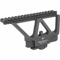 Midwest Industries MI-AKSM Mount System. Attaches to rifles with built-in AK receiver rail interface. High quality 1913 Mil spec rail, T-marked for location. Constructed from hard coat anodized 6061 aluminum. Features the patented Elite Defense QD system for no tool adjustment and repeat zero locking.