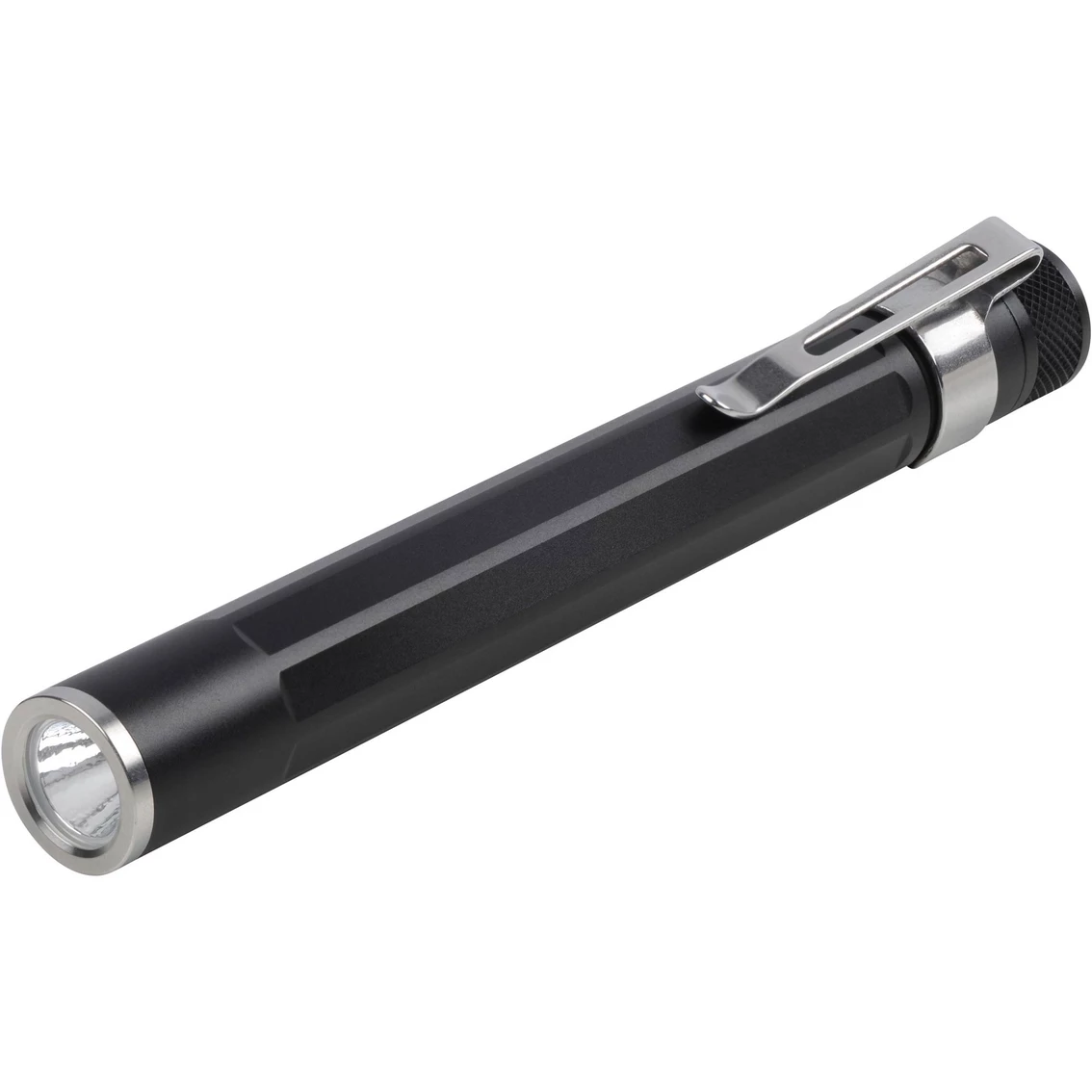 With its precision-machined aluminum body and stainless steel clip, the Inova XP LED Pen Light from Nite Ize is designed to fit comfortably in your pocket. The stainless steel clip allows it to be carried conveniently and securely wherever you go. Sleek and compact, the Inova XP is rugged enough to withstand serious use. Its patented optical system, featuring a uniform focused spot with flood beam pattern, provides up to 185 Lumens of super bright white light, with an effective range of 170 feet. The pushbutton end-cap switch activates constant and momentary high and low light output. Shockproof, crushproof and waterproof, the Inova XP Pen Light is powered by two AAA alkaline batteries (included).