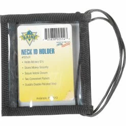 This Raine Neck ID Holder features a bi-fold heavy nylon ID case with front ID window that allows for easy presentation. Holder includes an internal Velcro money pocket and additional ID window.