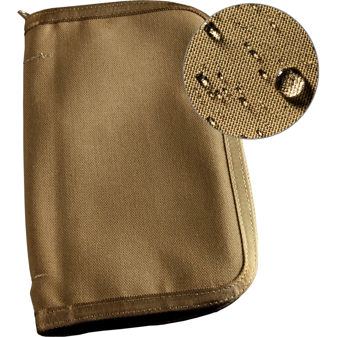 This tough Tan Cordura fabric Bound Book Cover will fit all of our 4.625 x 7 in. Spiral Notebooks, 4.625 x 7.25 in. Field-Flex Books, Pocket-sized, and regular sized Bound Books. It has a rugged zipper closure and holds up to 4 writing utensils! Closed size: 5.75 x 8.5 in. Model: C980.
