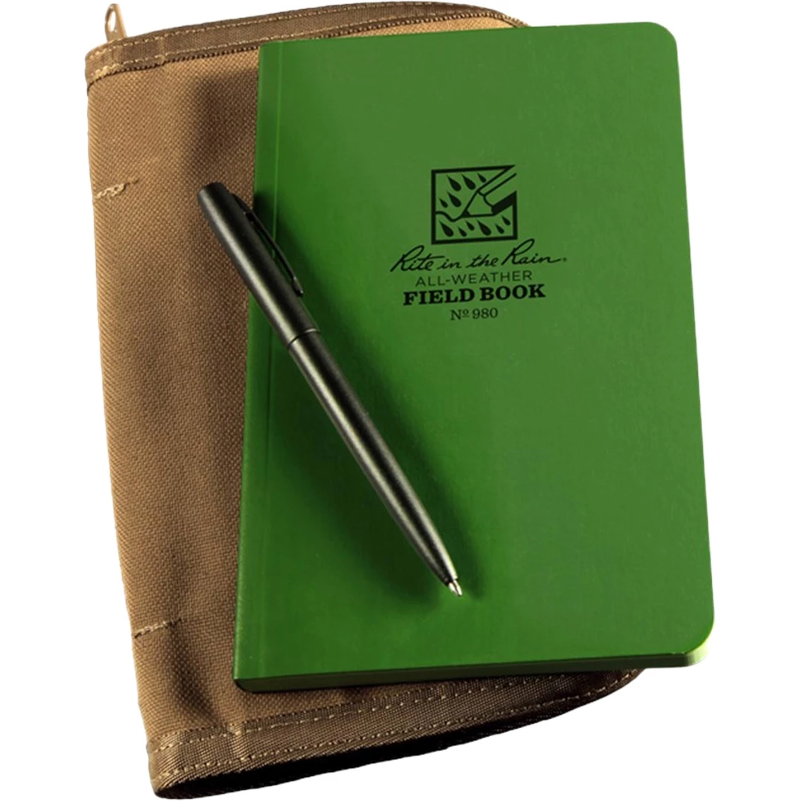 This tough Cordura fabric Cover will fit all of Rite in the Rain’s 4.625 in. x 7.25 in. Notebooks, 4.625 in. x 7.25 in. Field-Flex Books or Pocket-sized Bound Books (will not fit the standard bound books). It has a rugged zipper closure and holds up to 4 writing utensils!