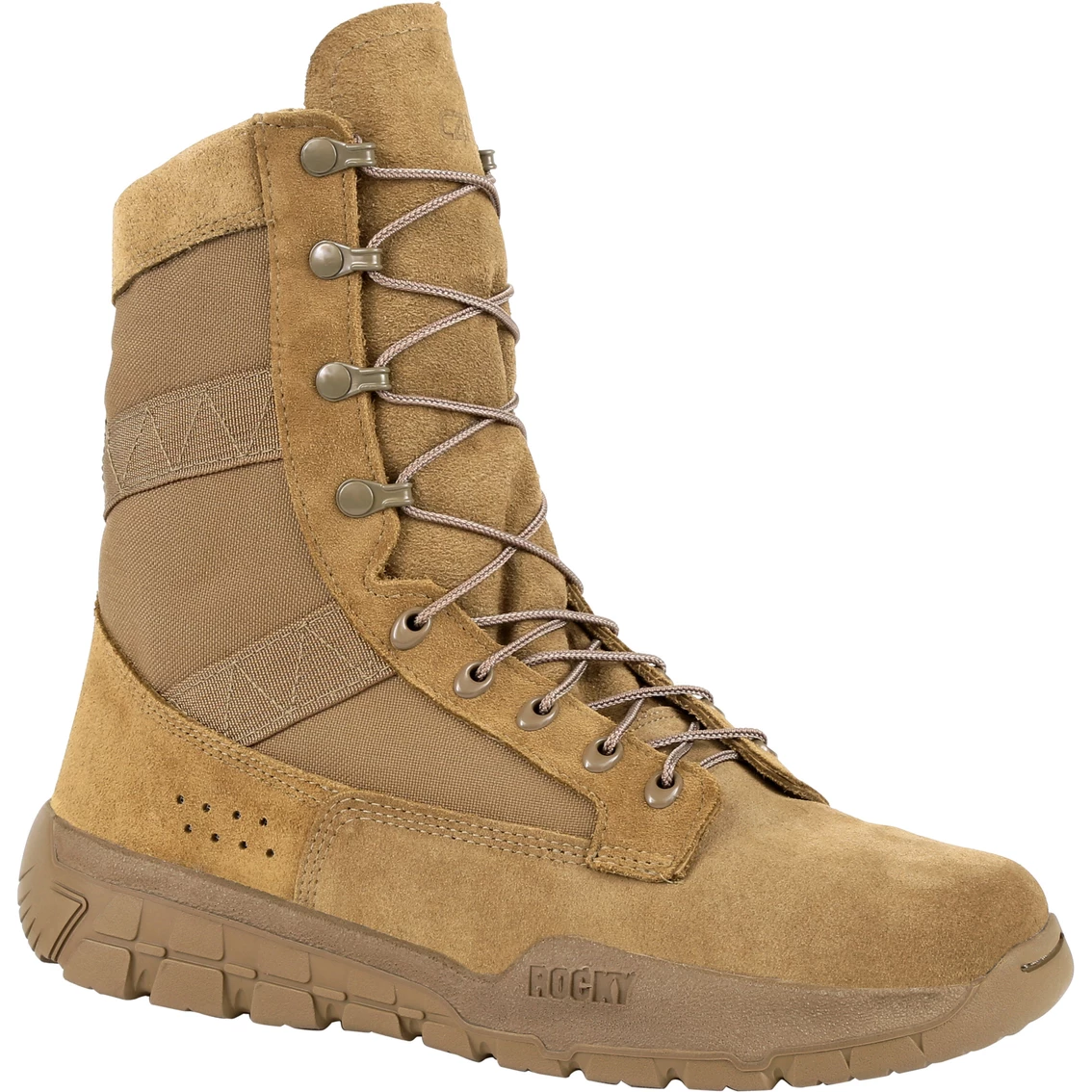 The troop-favorite C4T athletic military boot is back as our Berry-compliant and DA-PAM 670-1 certified C4R. Speed lace eyelets and NATO hooks Vibram soil that is oil, slip, heat abrasion, chemical and metal chip resident DA-PAM 670-1 Uniform compliant Rocky Airport cushion footbed. Water-resistant and fast drying materials Fiberglass shank and no-metallic Berry Complaint. Style: RKC108.