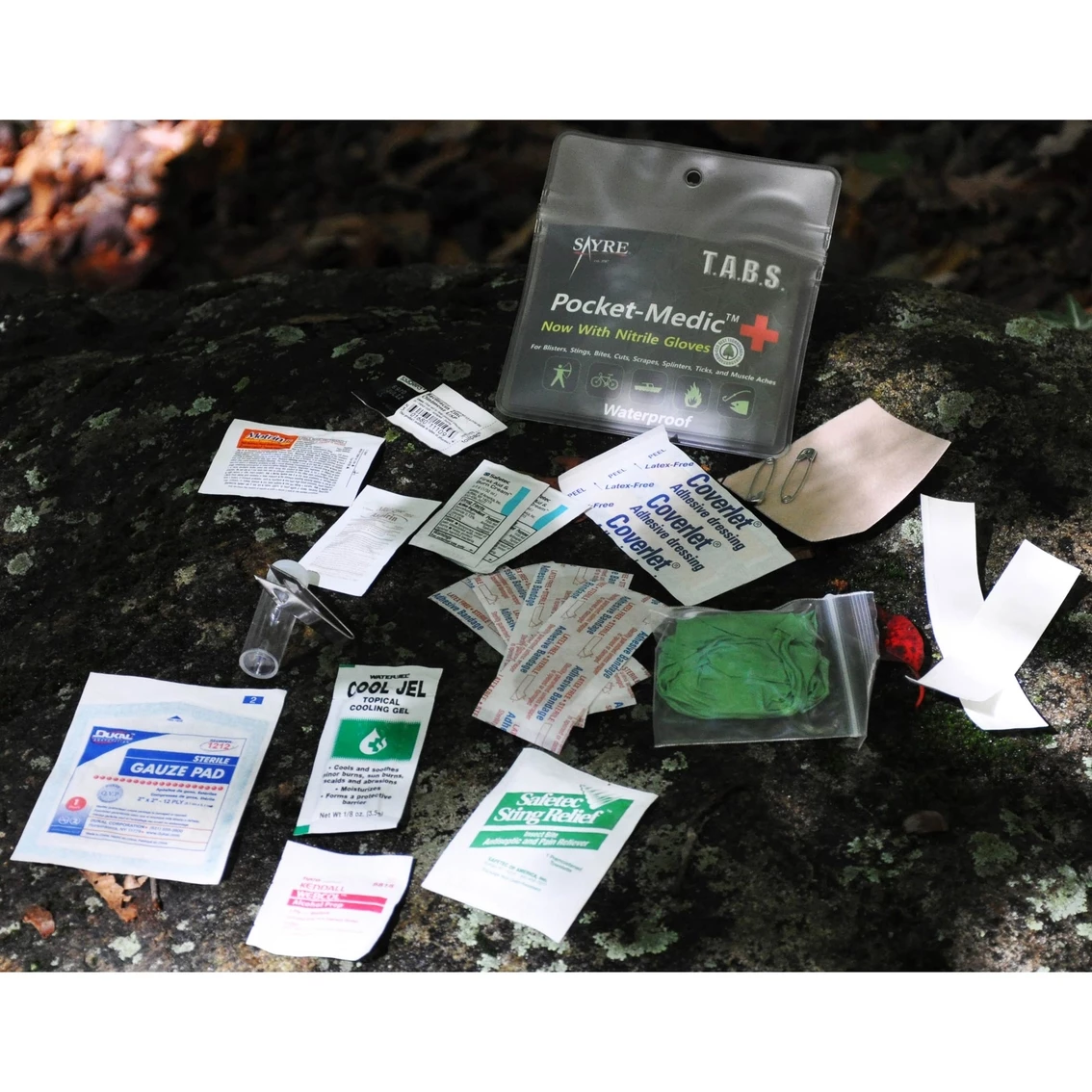 Everything you will need for personal first aid in the field comes packed in this tough, waterproof pouch from Sayre. It fits in cargo pockets or backpacks and includes Motrin, Aspirin, four Curad bandages, moleskin, butterfly closures, gauze, tweezers and more. 5.5 high. Style: LT074316.