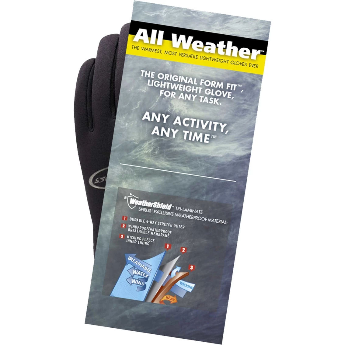 Seirus Innovation Original All Weather Gloves are the warmest lightweight gloves ever: AAFES # 1 selling gloves! The original lightweight all weather glove… it’s all in the name – the best gloves for the widest range of conditions and temperatures. Seirus’ exclusive Weathershield tri-laminate material creates an incredibly warm, water and wind resistant barrier with unbeatable breathability. The result is an amazingly durable form-fitting glove that is the most comfortable for a huge variety of activities. Recommended for: everyone from the go-anywhere try-anything outdoors nut who is outside all year and needs dexterity, warmth and versatility to the casual dog walker.