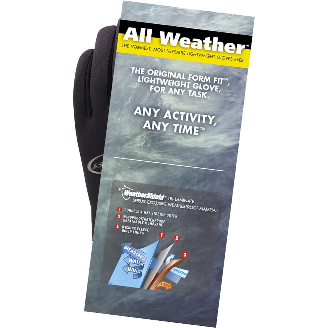 Seirus Innovation Original All Weather Gloves is the original lightweight All Weather glove; it’s all in the name, the best glove for the widest range of conditions and temperatures. Seirus’ exclusive Weathershield tri-laminate material creates a water and wind resistant barrier with unbeatable breathability. The result is a next-to-skin fit glove that is comfortable for a huge variety of activities. Recommended for: everyone from the go-anywhere try-anything outdoors nut who is outside all year and needs dexterity, warmth, and versatility to the casual dog walker.