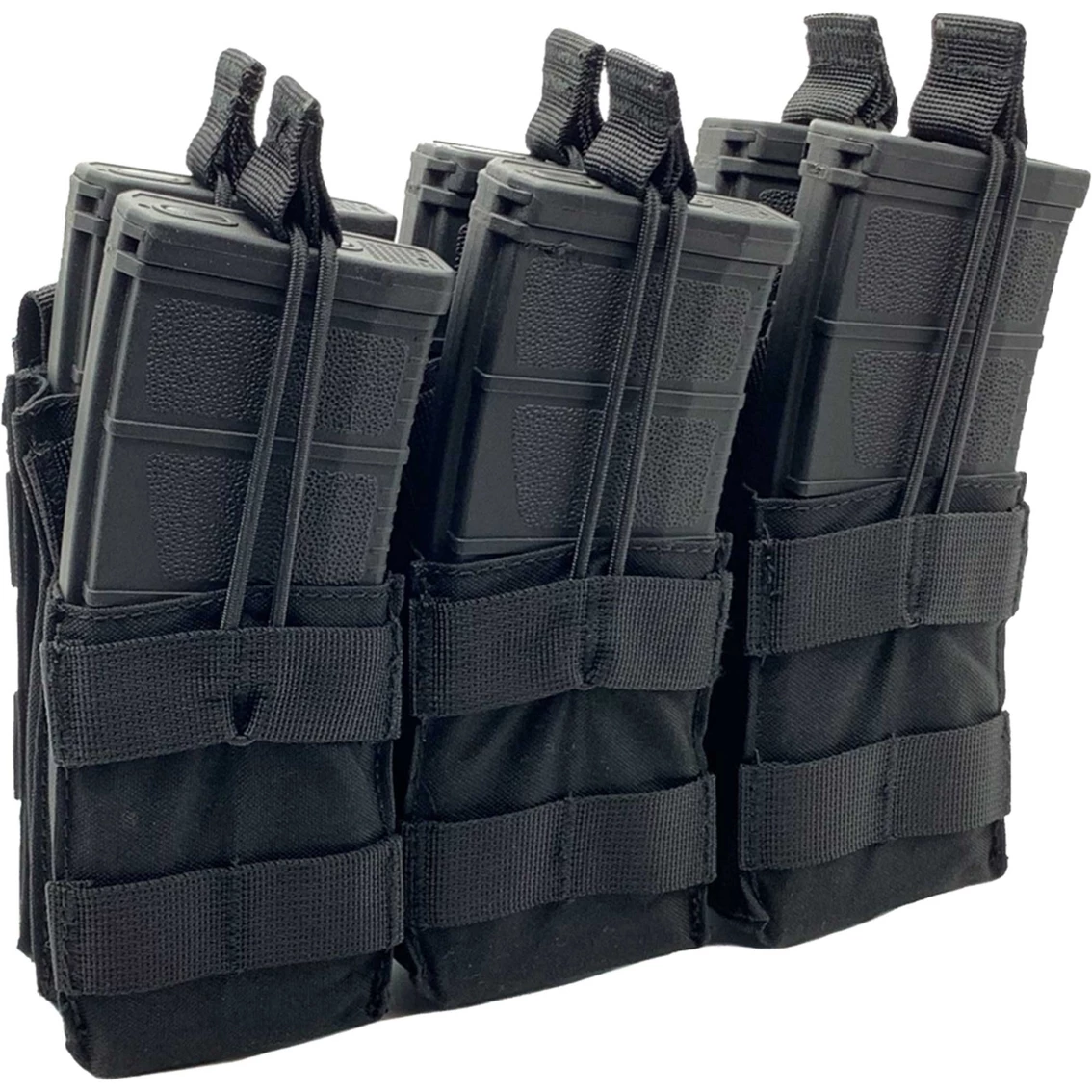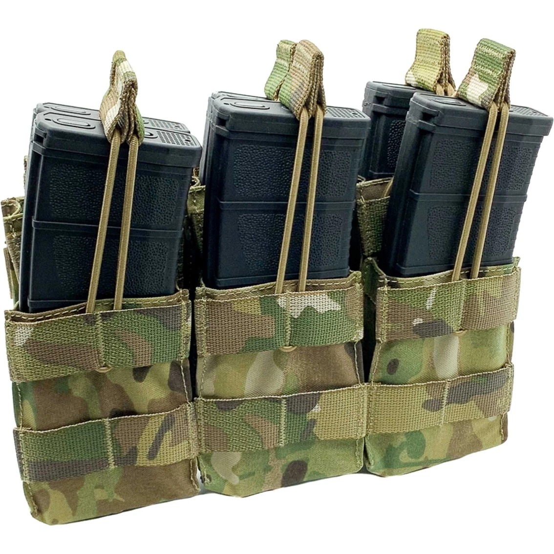 The Shellback Tactical Triple Stacker Open Top M4 Mag Pouch is the perfect solution to hold a complete combat load of ammo. This rugged and durable pouch holds six 30 round M4 magazines in a triple row double stacked pattern. The pouch is engineered with six open top slots for quick and easy access to your mags in a fire fight. Each slot has adjustable bungee retention cords with pull tabs to secure your magazines in place. Fully Molle compatible, this pouch features six button snap webbing straps to conveniently attach to any gear with PALS webbing. Backed by a lifetime guarantee, you break it, they repair it or replace it free of charge. Order your Shellback Tactical Triple Stacker Open Top M4 Mag Pouch today. Model: SBT-3300-MC.