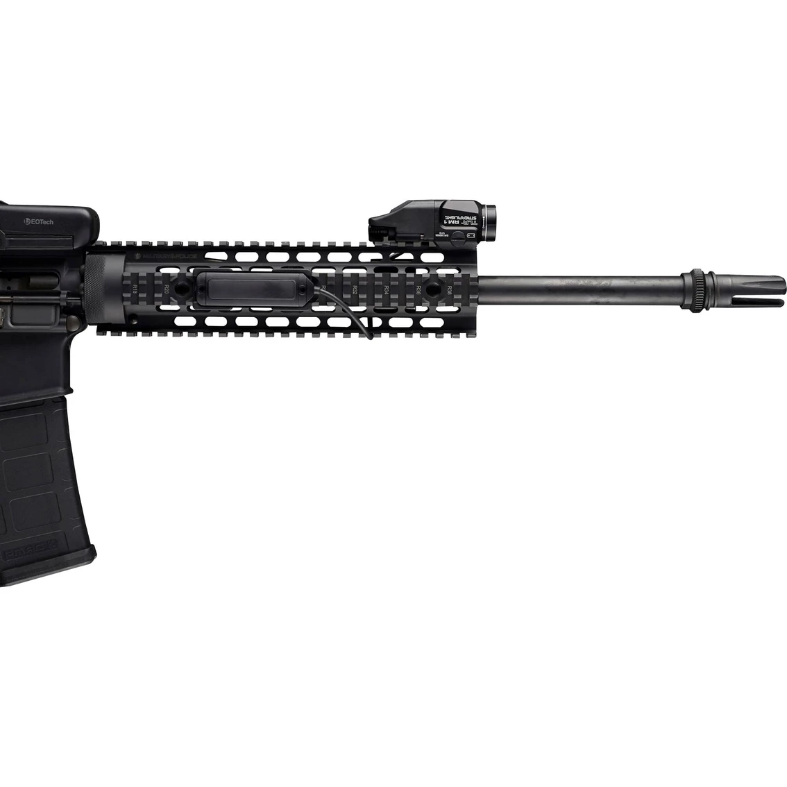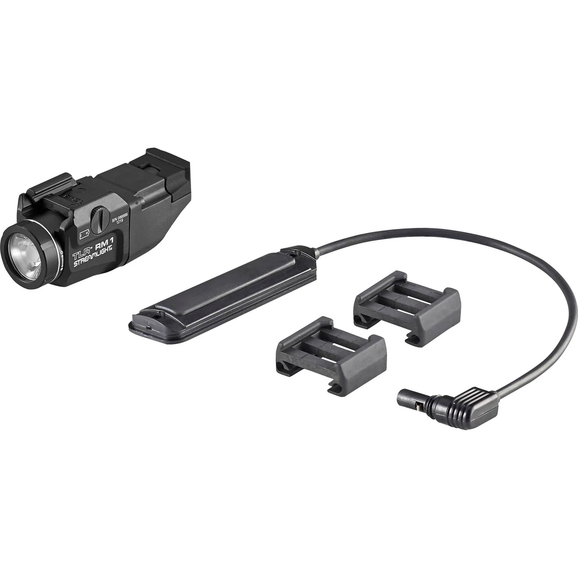 This 500 lumen compact tactical long gun light comes with a remote pressure switch. The Streamlight TLR RM 1 features independently operating push-button and remote pressure switches to provide the security of knowing you’ll always have light. This system comes packaged as a kit, offering everything you need to mount to your long gun (remote pressure switch kit, key kit). Model: 69440.