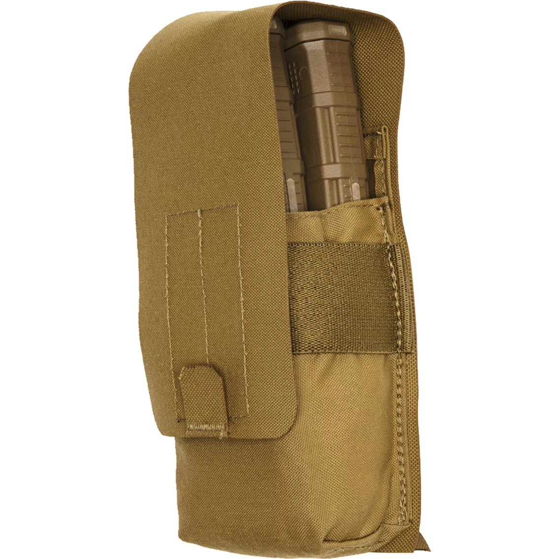 Tac Shield RZR MOLLE Stacked Rifle Mag Pouch is the latest in Gen III MOLLE using lazer cutting technology and durable laminate for individual load-bearing equipment. 50% lighter than legacy MOLLE flap pouches. A blackened grommet serves as a convenient drain hole. Space-saving stacked approach allows two M4/AR15 standard capacity 30 round magazines to occupy the same MOLLE real estate as a single Magazine Speed Load Pouch. Flapβs height adjustment secures modified base plates and MagPul PMAGβs. The heavy-duty wrap around elastic retention strap and internal divider hold your 1 or 2 standard capacity AR/M4 magazines tight, while the handy pull tab eases deployment with or without gloves. RZR MOLLE family is designed to function interactively as a holistic WARRIOR fighting system and is still 100% compatible with your current MOLLE/PALβs equipment. Model: T3561CY.