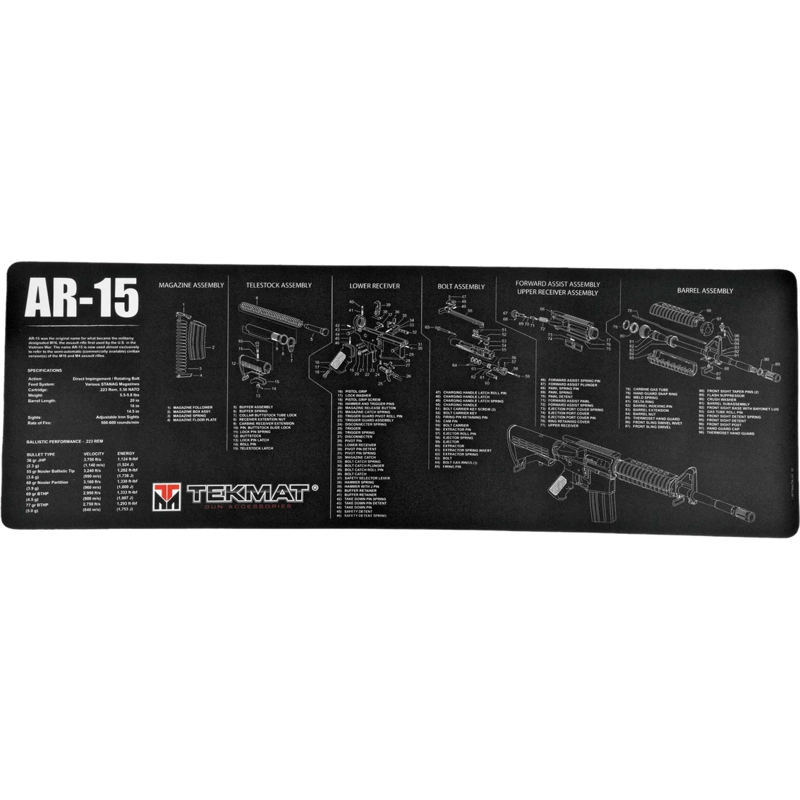 TekMat, AR-15 Rifle Mat, 12 x36 in., Black, Includes Small Microfiber TekTowel, Packed In Tube. Model: TEKR36-AR15.