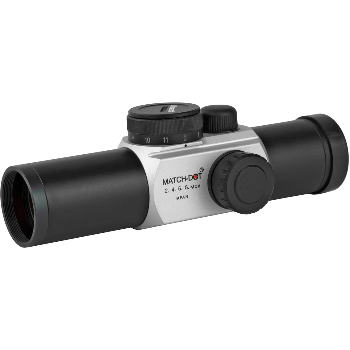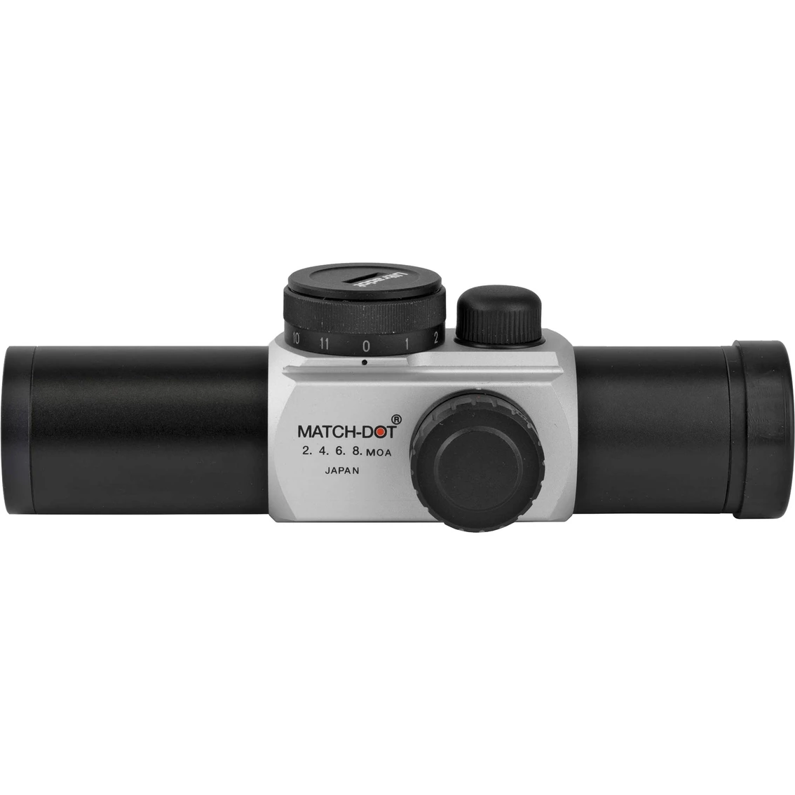 The Original Matchdot has become legendary in the bullseye community for it’s accuracy, durability and quality construction. Weighing just 4.8 oz and just 5.1 inches long, it was designed for competition shooters by Camp Perry Champions. Features four dot sizes – 2, 4, 6 and 8 MOA and a 30mm diameter tube. Click adjustable brightness control. Model: AALMATCHDOT.