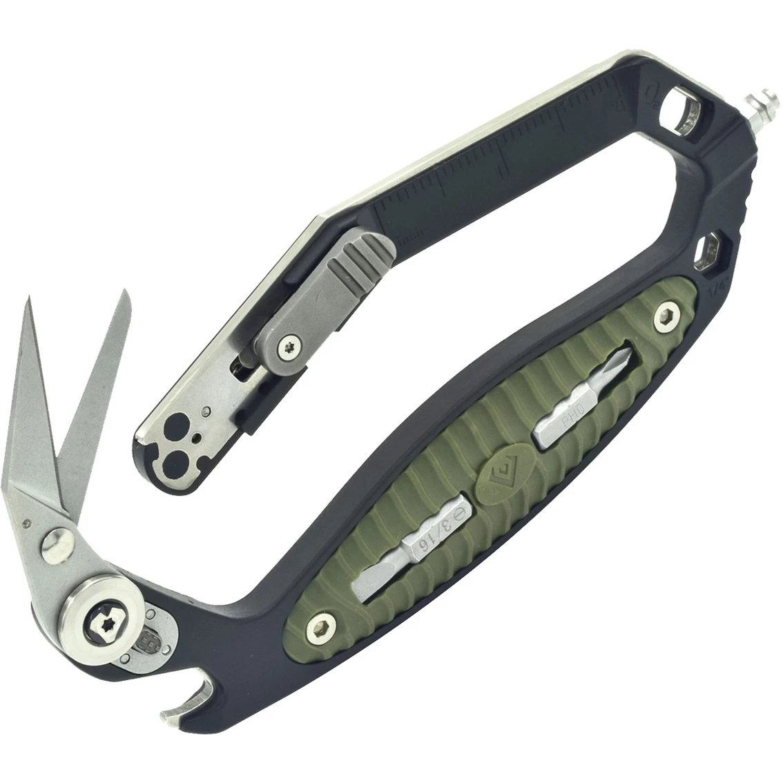 A rescue and utility multi-tool that features a 2in ruler, 1.5in scissors, an O2 wrench, bottle opener, removable glass breaker, (2) 1/4in bits, and a hermit crab knife. The crab has a spring lever opener and can be carried in a sheath or belt loop. It weighs 6 oz. and comes in orange or green. Perfect use for utility or rescue. Model: VMT18FRNPSWOR.